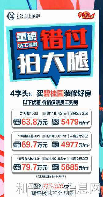 🏡#碧桂园·公园上城#🏡 ┌ 重  磅 ┐[让我看看]错过拍大腿 └员工福利┘⚡4字头买装修好房 ☎:️13435327568