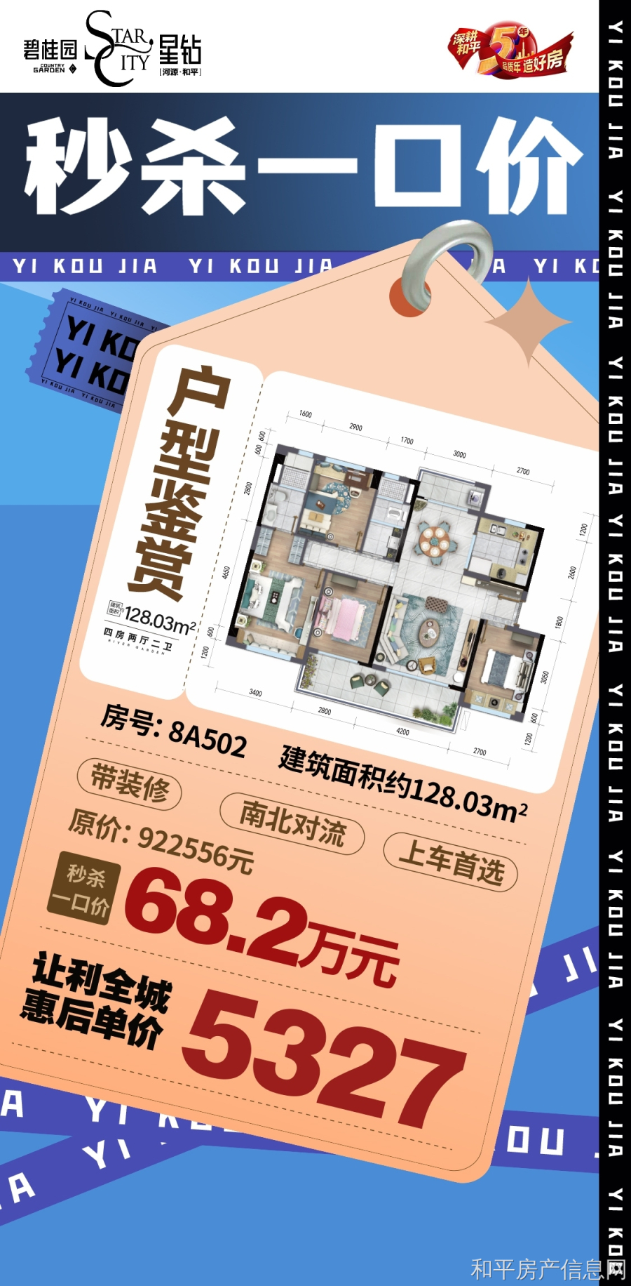 今日秒杀一口价 总价68.2万 买装修四房 ——碧桂园•星钻—— ️