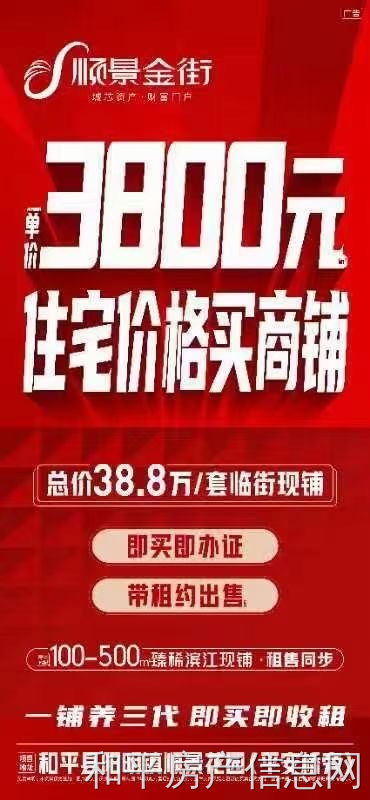 ✨ ✨ 顺景金街✨✨ ╭好╮🏙 临街旺铺汇聚八方来财 ┊铺┊💥 3800元/㎡住宅价格买商铺 ┊热┊🎊 100-500㎡臻稀滨江现铺